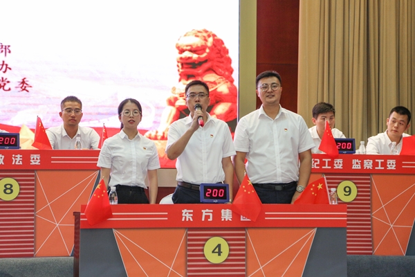 在“學習新思想·我與祖國共成長”知識競賽中,由集團黨委委員華小軍、東方地產(chǎn)公司薛清華、人力資源管理部包金金組成的東方集團代表隊,經(jīng)過激烈的角逐,最終榮獲三等獎;在“我和我的祖國”主題演講比賽中,區(qū)人力資源公司李其森憑借題為《堅守初心、奮斗前行》的精彩演講,進入最后的決賽,并獲得三等獎榮譽。