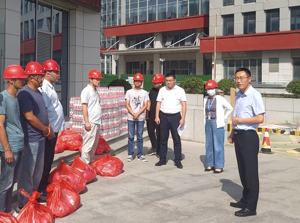 8月19日,王旭東一行前往未來(lái)科技城二三期,SKI項(xiàng)目紅外線(xiàn)供熱管道工程,躍進(jìn)河、興西河、中心河河道整治工程,鹽瀆路(希望大道-天山路)綠化工程等集團(tuán)在建項(xiàng)目工地,為大家送去礦泉水、風(fēng)油精、毛巾等防暑降溫物資,對(duì)項(xiàng)目員工在高溫天氣下堅(jiān)守崗位,全力奮戰(zhàn)一線(xiàn)的責(zé)任擔(dān)當(dāng)表示誠(chéng)摯的敬意和感謝。
