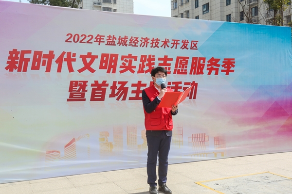 集團(tuán)志愿者周毅宣讀了鹽城經(jīng)濟(jì)技術(shù)開(kāi)發(fā)區(qū)新時(shí)代文明實(shí)踐志愿服務(wù)季倡議書(shū)。