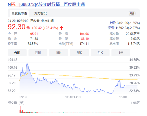截至當(dāng)日下午3點收盤,拓荊科技大漲28.41%,報92.30元,總市值116.74億元,打破近期芯片股連續(xù)破發(fā)頹勢,有力提振了市場和投資人信心。