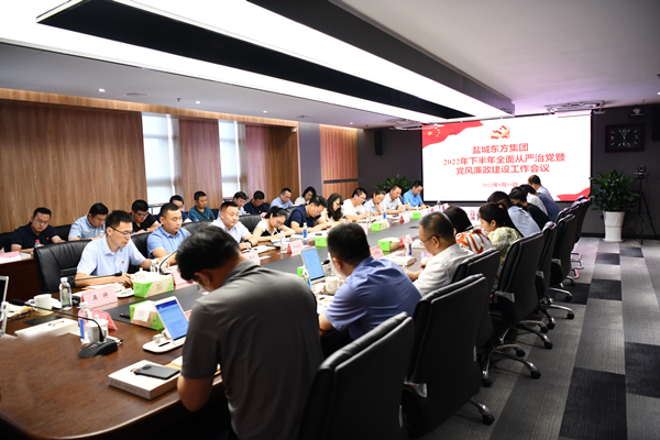 8月19日,鹽城東方集團(tuán)在7樓一號(hào)會(huì)議室召開(kāi)2022年下半年全面從嚴(yán)治黨暨黨風(fēng)廉政建設(shè)工作會(huì)議,全面總結(jié)上半年全面從嚴(yán)治黨工作,研究部署集團(tuán)下半年全面從嚴(yán)治黨、黨風(fēng)廉政建設(shè)工作。集團(tuán)黨委書(shū)記、董事長(zhǎng)、總經(jīng)理王旭東主持會(huì)議并作講話。集團(tuán)領(lǐng)導(dǎo)班子成員參加會(huì)議,集團(tuán)各部門(mén)、子公司負(fù)責(zé)同志列席會(huì)議。